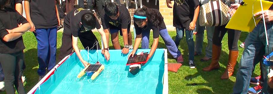 Raced in a 10 metre pool, solar boats use fishing line for steering. Boats are built to the Australian-International Model Solar Challenge specifications. Participants are K – 12 with categories for primary and secondary school.